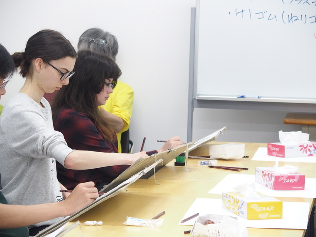 A class for non-Kanji background students to practice writing with awareness of "beautiful Japanese writing." By focusing on writing while looking at examples, students learn correct stroke order and balance.