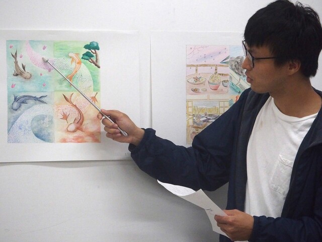 This class is conducted by an academic staff member or the person in charge of entrance examinations at the Kyoto University of the Arts (KUA) once every month. While confirming their own capabilities, students can learn the knowledge and techniques necessary to pass entrance examinations in phased studies. Students aim to pass the Entrance Examination of Summer Communication Admission (Aug., and Oct.) at the Kyoto University of the Arts. The content of the class is also useful for students who intend to proceed to the next stage of education at other universities or vocational schools, as it prepares students for their studies of the necessary knowledge and techniques after they enter a university or vocational school.